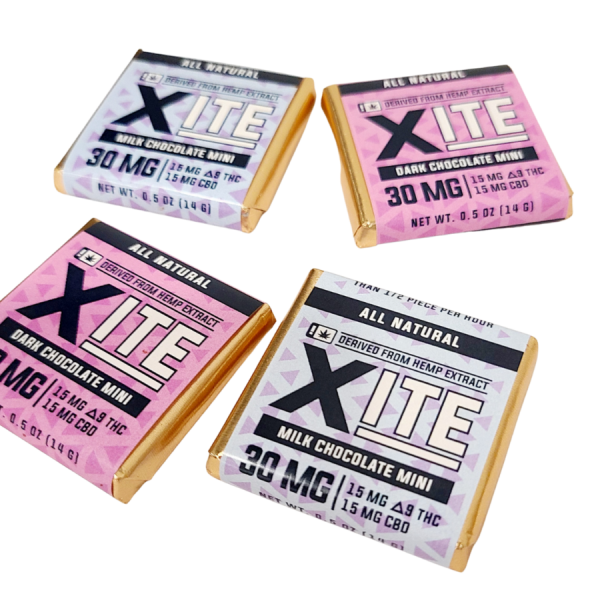 Enjoy premium hemp infused chocolate with Xite Infused Chocolate Squares. Each square delivers 15โฏmg of Deltaโฏ9โฏTHC and 15โฏmg of CBD in a balanced 1:1 ratio for smooth, mellow effects in every bite. All chocolates are crafted using full spectrum hemp extract and real chocolate ingredients.